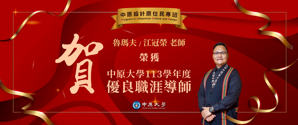 中原大學設計學院同賀本院魯瑪夫(江冠榮)老師榮獲113學年度中原大學優良職涯導師獎!