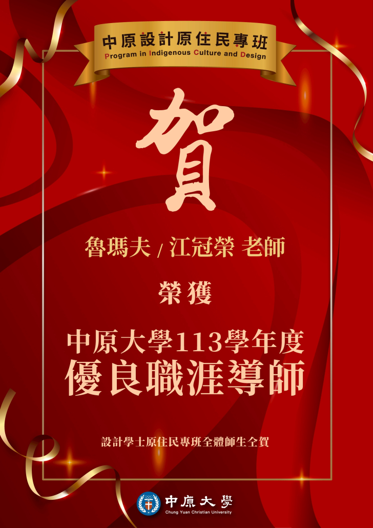 賀!設計學院魯瑪夫老師榮獲中原大學113學年度「優良職涯導師」殊榮!