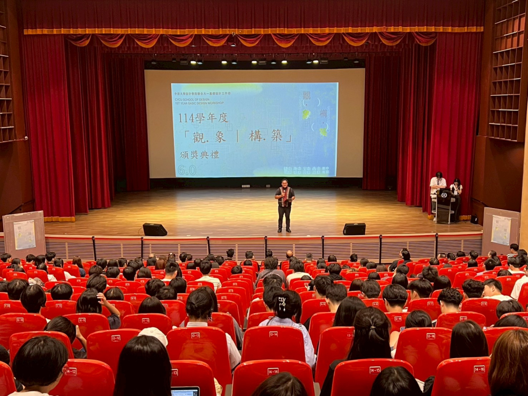 2025年10月13日,中原大學設計學院於維澈樓2F宗倬章紀念廳舉辦「聯合基礎設計工作坊」成果頒獎典禮。本次活動由建築系、室內設計系、商業設計系、景觀建築系及設計原住民專班五系大一學生共同參與,以主題 「觀.象.構.築」(Observation × Imagination × Construction) 展現一年級學生在設計學習初期的觀察力、創造力與整合表現。